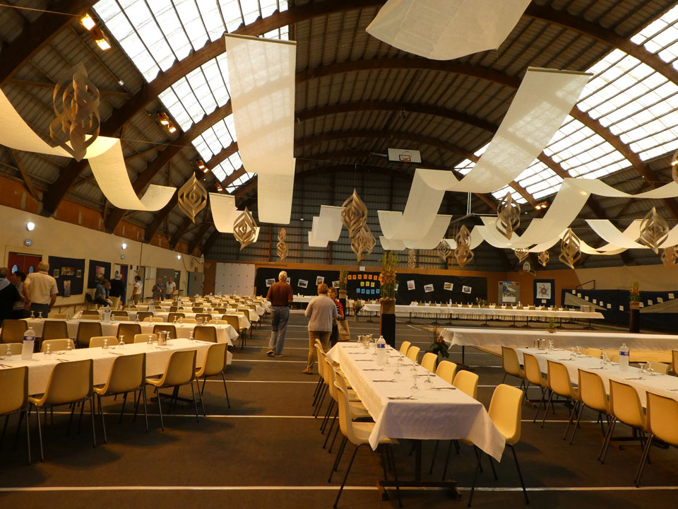 La soirée de gala a été le point d’orgue de ce week-end, où l’ensemble des 200 participants se sont restaurés et ont dansé dans la salle des sports de Beaulieu, salle décorée avec soin pour la circonstance par des petites mains très inventives et au moyen de matériaux de récupération pour certains décors.