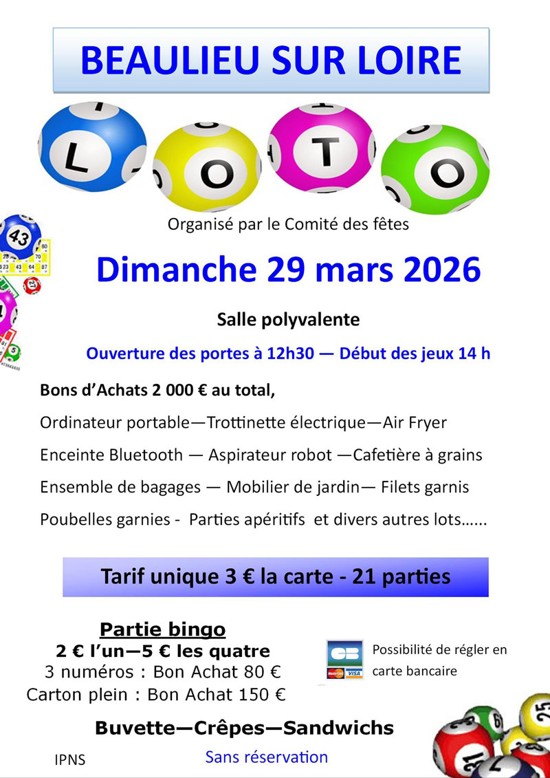 Comme les années précédentes, les bulletins d’inscription seront bientôt disponibles dans les mairies et commerces de Beaulieu, Loches et les environs. Vous pouvez également vous inscrire en ligne via Helloasso.